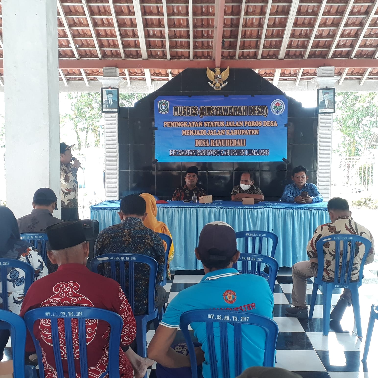 Musyawarah desa mengenai peningkatan status jalan desa menjadi jalan kabupaten . Sesuai surat edaran dari Kecamatan Ranuyoso, Desa Ranubedali dijadwalkan untuk mengadakan musdes ...